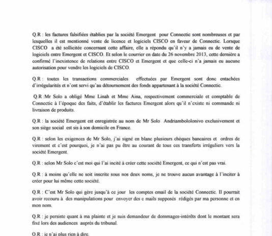 RANARISON Tsilavo CEO NEXTHOPE doit confirmer sa plainte devant les policiers malgaches le 22 juillet 2015. Il va donc affirmer que la société EMERGENT...