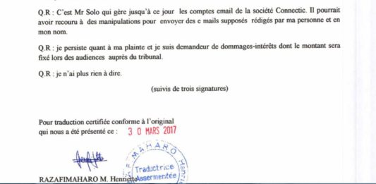 Pour avoir le statut de la victime de la spoliation, RANARISON Tsilavo, ancien directeur exécutif de CONNECTIC jusqu'en septembre 2012, devenu gérant fondateur de NEXTHOPE Madagascar malgré un protocole d'accord établi par le cabinet d'avocat MCI va avancer des allégations qu'on va essayer d'analyser pv-audition-policiere-22-juillet-2015-de-ranarison-tsilavo
